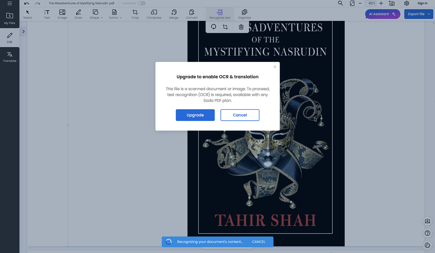 Adobe is super costly, but if you can get your hands on it, it definitely has the best OCR on the planet, and you don’t need internet for that OCR to work.